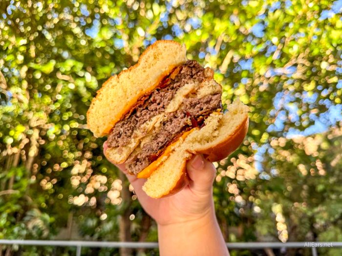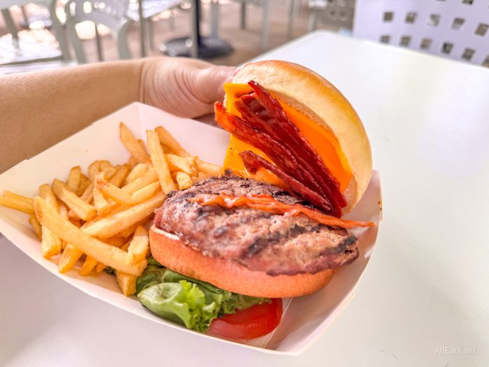Like many Disney World quick-service hamburgers, we weren’t a big fan of this offering. The same word came to mind regarding the bun, the beef, and the cheese: Bland. There was very little flavor to them, and both the bun and the burger just kind of fell apart.