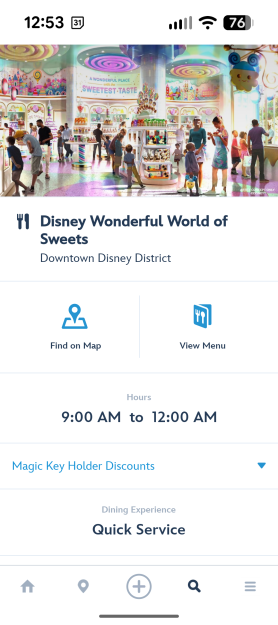 We noticed something strange when we went to pull up Disney Wonderful World of Sweets on the app today. The option to Mobile Order treats is completely gone.