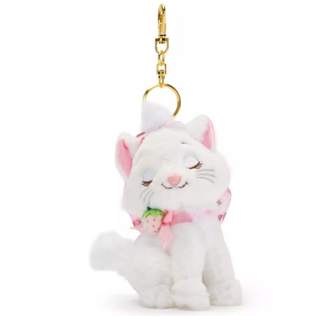 Sold through the Disney Store Japan, this keychain features Marie — the adorable kitten from The Aristocats — in plush form with a little strawberry under her chin! It even comes with an oversized strawberry-printed and mesh-filled bow on the back!