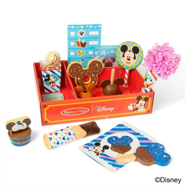 I keep seeing this toy set online, and I’m totally jealous. It comes with wooden toys that look like your favorite Disney Parks snacks, like cotton candy, lolly pops, churros, Mickey bars, and more. The food is interactive with different wrappers and textures.