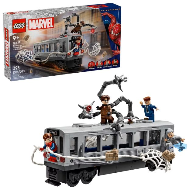 You can play with Spider-Man and Dock Ock, who has his mechanical tentacles on a subway car. Spider-Man has plenty of webs to move around, and the set is 20% off. It’s made with 393 pieces, so it’s a good set for kids just starting to build bigger sets independently.