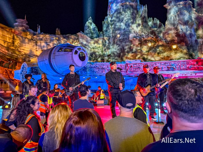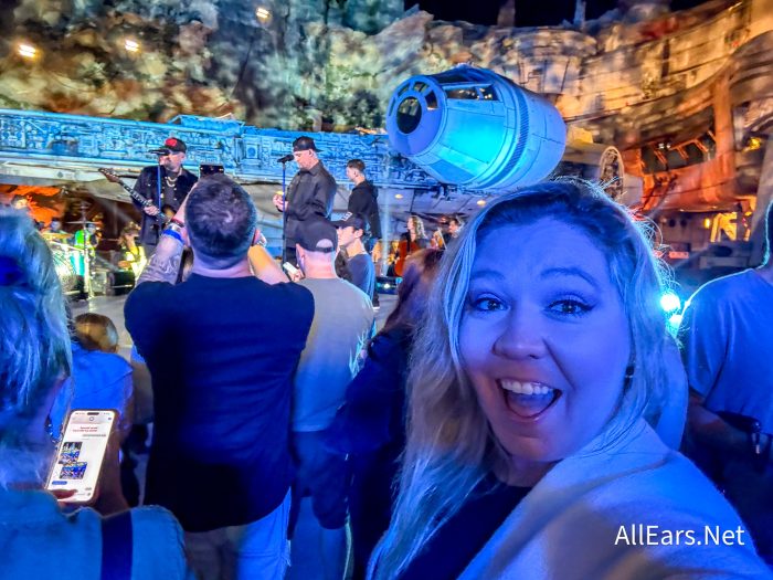 During our time in Hollywood Studios, we were escorted to where we signed release forms inside ABC Commissary. (Something you can’t say every day.) We were then escorted into Galaxy’s Edge to see the surprise performance from Good Charlotte!