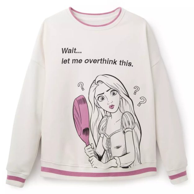 This sweatshirt features Rapunzel holding her iconic frying pan and embroidered details. The drop shoulders and long sleeves make this sweatshirt look so comfortable and cozy, and it seems like the perfect thing to wear during your next movie night.