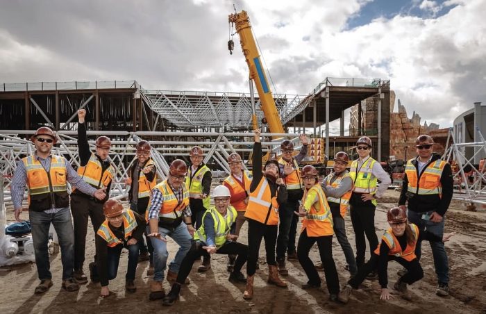 This construction has already cut off the pathway between Avengers Campus and Cars Land.