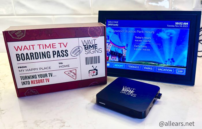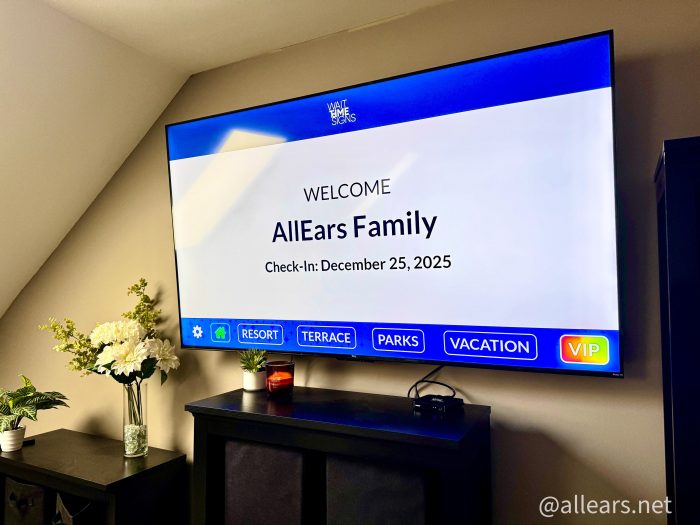 That’s right — you can gift someone this Wait Time TV media player, and make the TV in their living room work as if it’s the one in their Disney World hotel. This welcome screen makes my heart beat a little faster just looking at it! You can watch live-streamed Orlando skyline and fireworks views, real-time wait times in the parks, and a resort channel with park hours and special events!