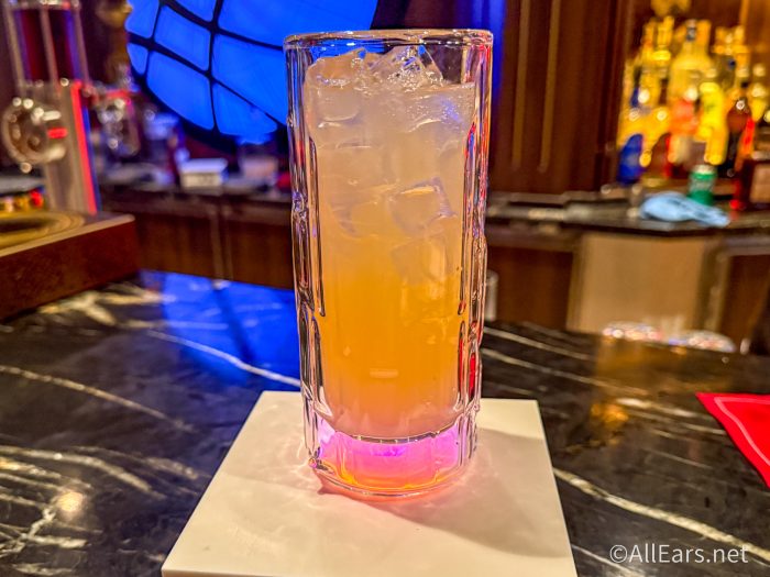 We tried The Incursion for $16, which had Absolut Citron, Cointreau, Aperol, Lillet Blanc, and White Cranberry. This drink is basically a Cosmopolitan, but we appreciate that there are safer, familiar options if you want to enjoy the themed area without getting a wild drink. There are definitely more interesting options, but they are enjoyable nonetheless.