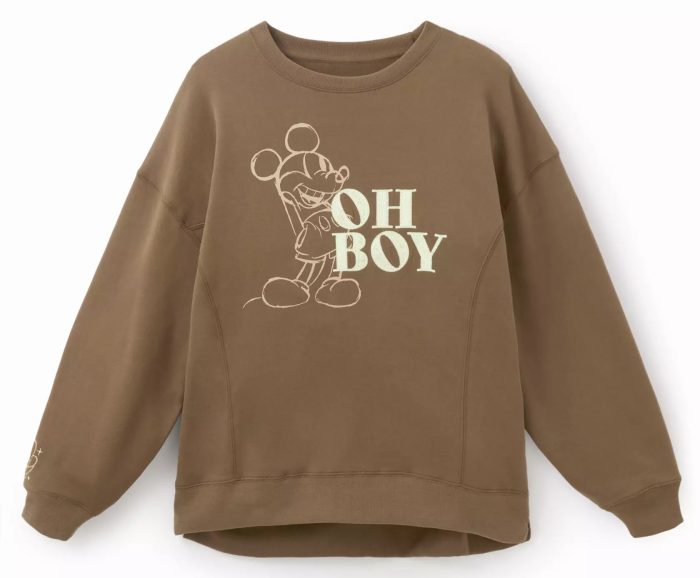 This one is also for the Mickey lovers. This brown Mickey “Oh Boy” Sweatshirt is perfect for the winter season. It also has a sketch of Mickey on it.