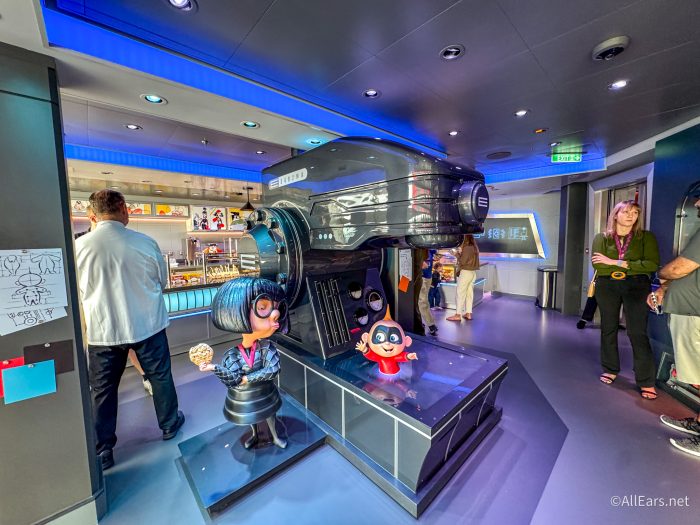 Edna À La Mode Sweets is a sweet treat shop that is themed after Edna Mode’s lab in the short Auntie Edna. You’ll even see Edna in the shop with Baby Jack-Jack!