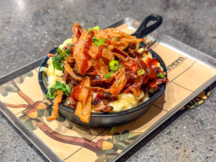 Then we headed over to The Oak & Star Tavern in Celestial Park for the two new offerings over there. The first is the Loaded Brisket Mac and Cheese for $8.99, and this is more of a white cheddar mac and cheese, which we loved since it’s so gooey and cheesy. The beef on top is closer to a roasted barbeque, and it has a great sweet taste to it that works really well with the onions and crispies on top.