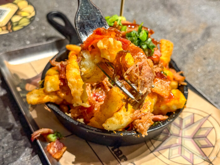 The fries themselves literally taste like a barbecue chip in fry form, which we love, and while we love the melted cheese on top, we would have liked to see a little bit more of it. The pulled pork itself is delicious, but we wish the bacon bits mixed in were crunchy instead of soft (since there’s already lots of soft going on with the fries and pulled pork). We did also really love the barbecue sauce, and if you’re wanting more, you’ll find lots throughout the restaurant, so that’s easily rectified. We’d definitely get these again, but be ready to eat them quick so the fries don’t get too soggy!