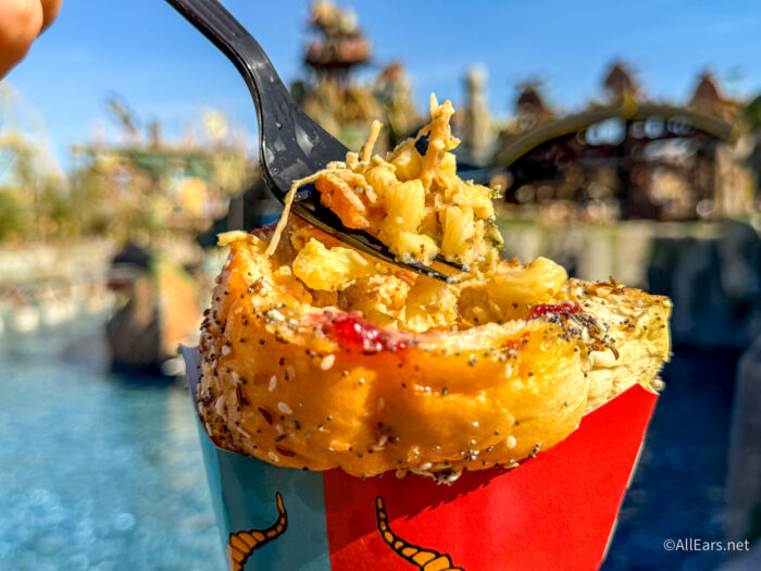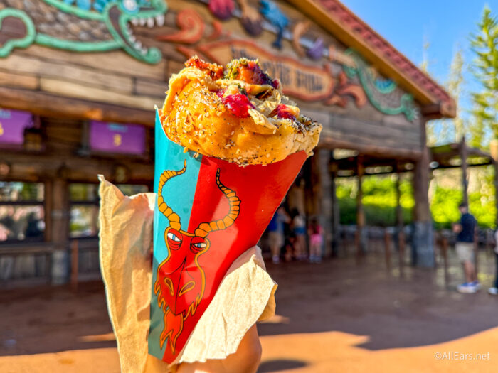 Snoggletog is what the people of Berk celebrate around this season (the holiday season, for us), and this new cone is an AMAZING way to celebrate. You can taste every single flavor in this cone, and it’s incredible — it really is like a Thanksgiving feast in your mouth! It was soft and pliable in the best way, since some of the more crispy cones are harder to eat, and the mac and cheese was delicious and creamy as always.