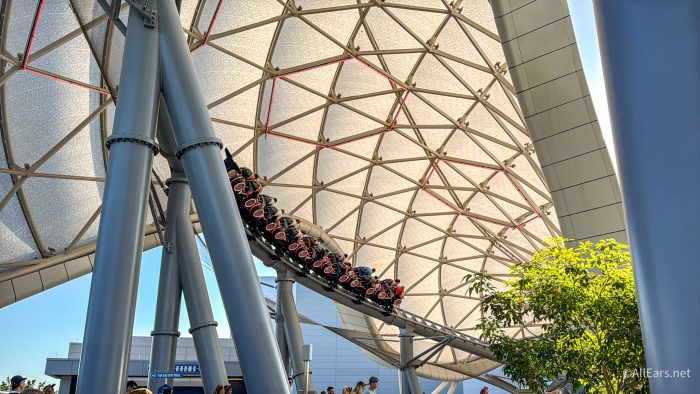 While the locker system can feel like a hassle, there is a good reason for it. TRON’s sleek, open-air Lightcycle design offers minimal storage and relies on a chest and calf restraint system to keep guests secure. Anything stored loosely could easily fall from the vehicle at high speeds. So while Disney fans may be used to keeping their Loungefly bags at their feet on Space Mountain or placing hats in shared mesh pouches on Big Thunder Mountain Railroad, TRON simply isn’t built for that.