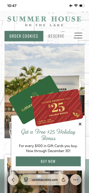 Summer House on the Lake just announced a great gift card deal — when you buy $100 in gift cards, you get $25 for free! Now, this doesn’t have to be one $100 gift card, it can be multiple gift cards that add up to $100, which means you could grab four $25 gift cards for friends, then get the free $25 one for yourself.