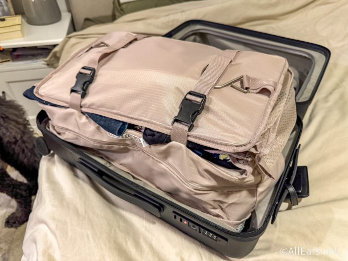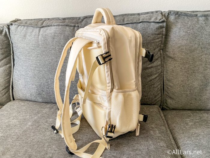 Okay, I have to admit that this backpack is my new travel MVP. It’s technically a backpack, but it fits like a mini suitcase. I managed to pack my entire park day setup with a laptop, snacks, toiletries, chargers, AND an extra pair of shoes, and it still counted as a personal item.