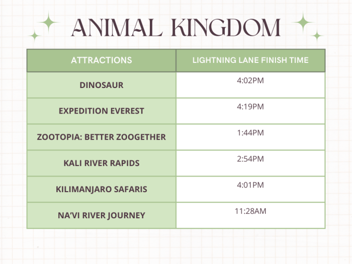 Lastly, at Animal Kingdom, it seems to be less competitive here to grab Lightning Lanes. Na’vi River Journey is the earliest to fill up at just 11:28 AM.