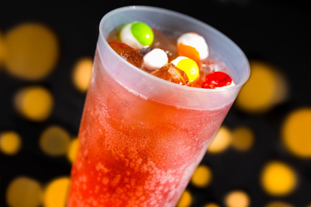 - Countdown Cider: Sparkling apple cider with strawberry syrup and SKITTLES POP’d Original Freeze-Dried Candy (non-alcoholic)
