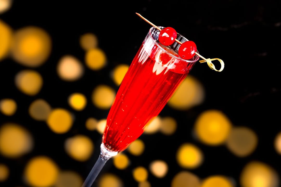 - Midnight Royale: Orange liqueur, cranberry juice, simple syrup, and Prosecco garnished with cranberries