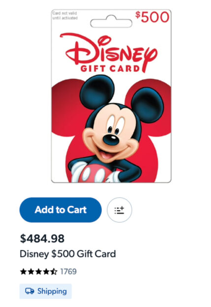 Let’s begin with Target, who are currently offering several tiers of Disney Gift Cards, including a $500 option.