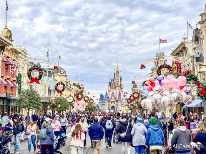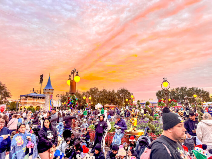 We stopped by to check out the first fireworks show on December 30th, and it was PACKED. The parking lots at the Transportation and Ticket Center were nearly full by 2 PM. When we found our spot for the fireworks around 6 PM, there was only room available in Frontierland and Tomorrowland. We had gotten a notification of this around 5 PM from the My Disney Experience app.