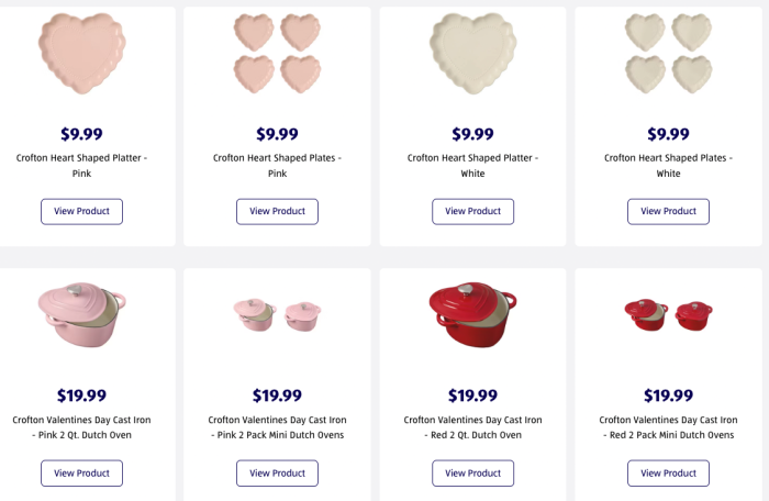 They’re available in both 2 quarts and a pack of mini dutch ovens that comes with two smaller versions. Heart-shaped plates are also available, and we can only imagine how adorable these would be for a Valentine’s Day party.