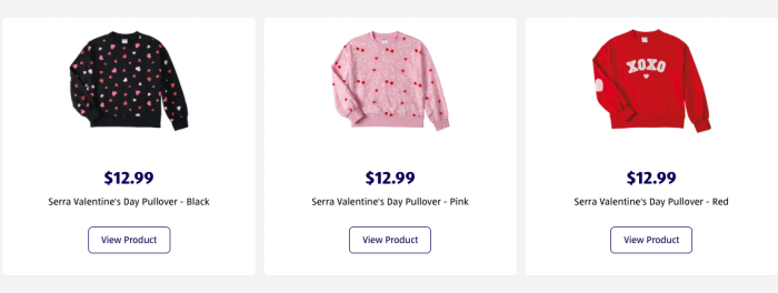 If it’s still chilly where you are during Valentine’s Day season, don’t miss the new Valentine’s Day Pullovers available.