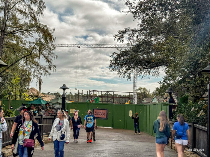 DinoLand U.S.A., a fixture of the park since its opening day in 1998, is being replaced with a new Tropical Americas themed land. While some parts of DinoLand — specifically Dinosaur — will still be operational until February of 2026, construction on other areas of Tropical Americas is going strong, including the land’s Encanto attraction.