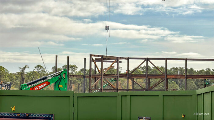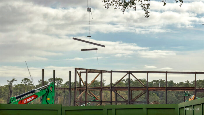 With a supposed opening date of 2027, work on the village of Pueblo Esperanza — the setting of Tropical Americas — is moving quickly. There are even beams moving through the air!