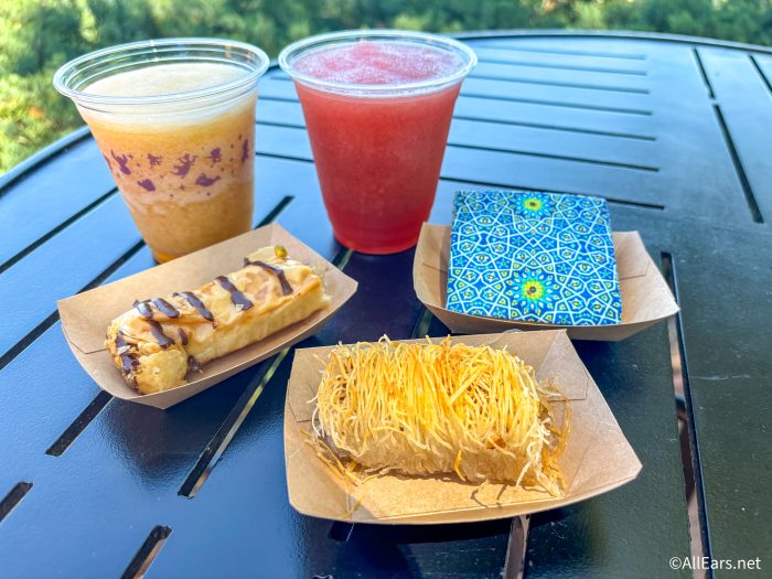 If you’re feeling pastries, the Pick 3 Pastry Assortment at Oasis Sweets & Sips in EPCOT is ONLY $6.75 and lets you choose from a wide array of options, such as the Pistachio Baklava, Flogeres, and the Kataifi! If you have a bigger budget, you can even grab larger assortments of 5 or 7.