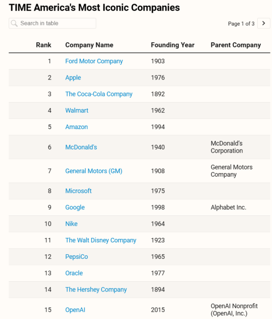 TIME called the list “a comprehensive analysis that seeks to identify entities that have not only achieved commercial success but have also become deeply ingrained in the American identity, shaping perceptions, habits, and aspirations.”