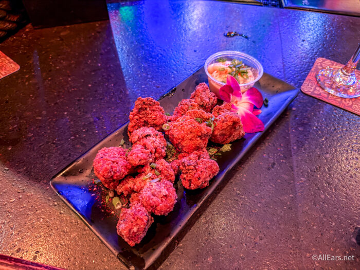 However, due to the inside being closed soon, which is where many of the restaurant’s special effects take place, we wouldn’t be surprised if the demand for this spot decreases slightly until the indoor part reopens. If you are planning to dine here regardless, on the menu, you’ll find a variety of appetizers, salads, entrees, desserts, and a ton of fun Tiki-inspired drinks (both alcoholic and non-alcoholic!).