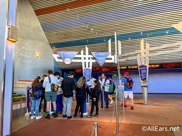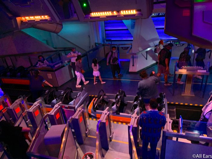 Space Mountain’s queue merges Lightning Lane and standby riders near the loading area. You’ll often see droves of Lightning Lane guests move up in the queue faster. After a herd goes through, Cast Members will let a small number of standby guests move up, and then it’s back to letting a mass of Lightning Lane guests go once more. Rinse and repeat.