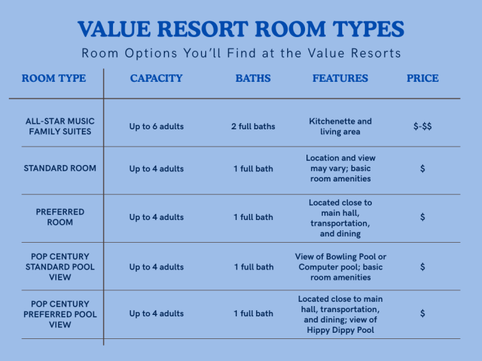 Deciding which room type and what resort can feel like a lot of pressure, but we hope these charts make it easier for you. For more Disney tips and news, be sure to follow us at AllEars.net.