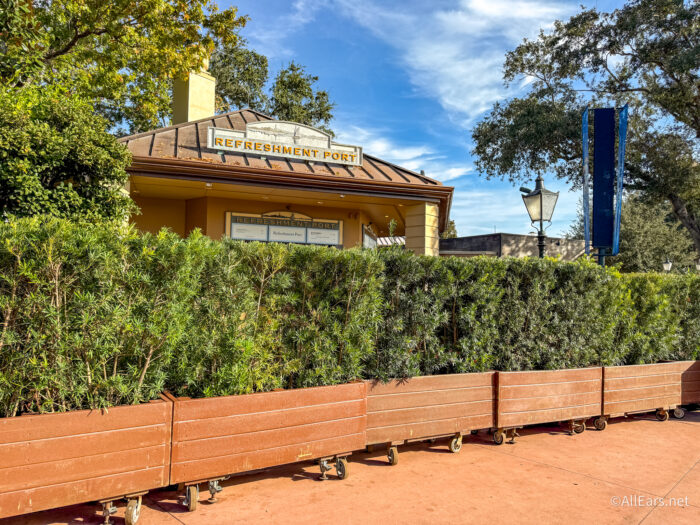 Refreshment Port is located right at the entrance to World Showcase, closest to the Canada Pavilion, and it’s known for serving up poutine — both classic and special versions around certain times of year. We usually love seeing what special version is available for the EPCOT Festivals, but now that this spot is closed, we won’t be able to snag a bite during Festival of the Arts.