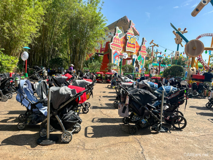 Both Disneyland and Disney World are busy places and thousands of strollers are pushed through the parks every single day. Strollers are not permitted everywhere, and you will find yourself parking your stroller (in a designated stroller parking area) many times throughout your day. In order to make room, Cast Members will sometimes move strollers around, which means it can be very easy to “lose” yours in the crowd.