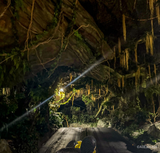 Since we’re often not on the vacation of a lifetime like other guests are, we think it’s pretty special to be able to see a ride scene in a way we’ve never seen it before, like Space Mountain with the lights on, or being evacuated off of the PeopleMover and getting to walk the track. However, one of our team’s family members was in the parks recently and got to see something even WE have never seen, and if we’re being honest, we’re a little jealous — he got to see DINOSAUR with the LIGHTS ON!
