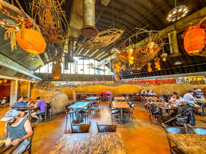 Located in Animal Kingdom’s Pandora, this Avatar-themed quick service restaurant is heavily themed with the land, including a themed menu.