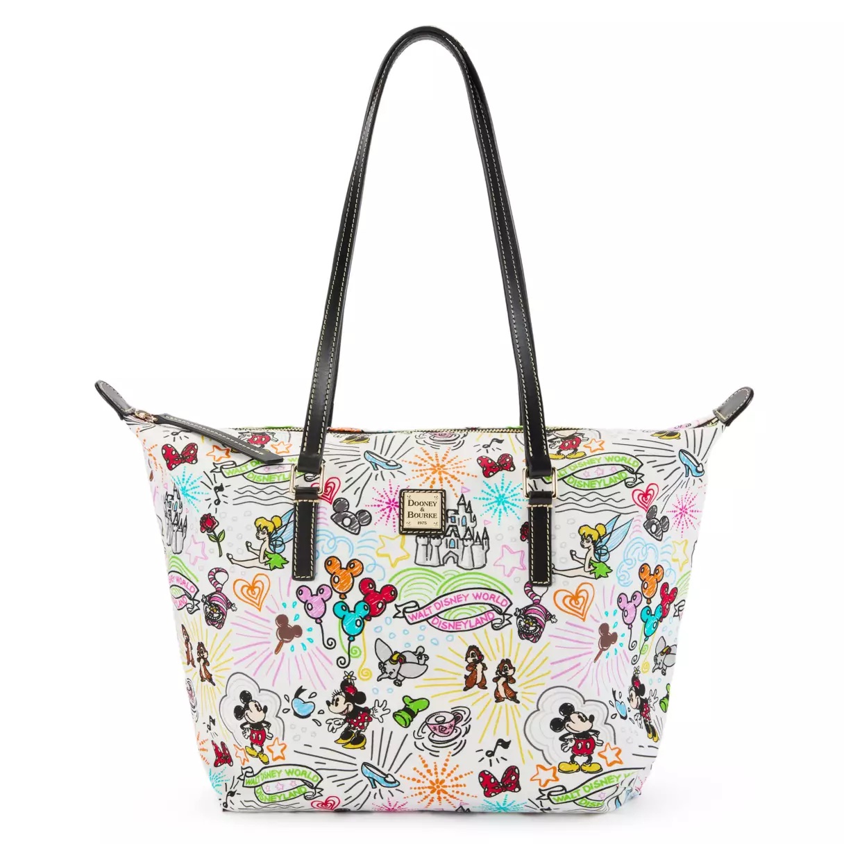 A new Disney Dooney & Bourke sketch bag collection just dropped online. We’ve seen this print before, so initially we thought it was a re-release. Then we noticed that these bags feature black handles, whereas the last collection features tan handles.