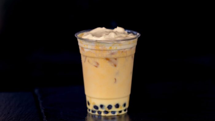 - 🍽️ Mango Milk Tea with brown sugar tapioca spheres topped with pineapple cold foam (Non-alcoholic) (New)