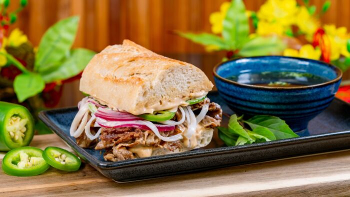 - 🍽️Phở Dip with rice noodles, sliced beef, shaved jalapeños, pickled onions, and phở broth