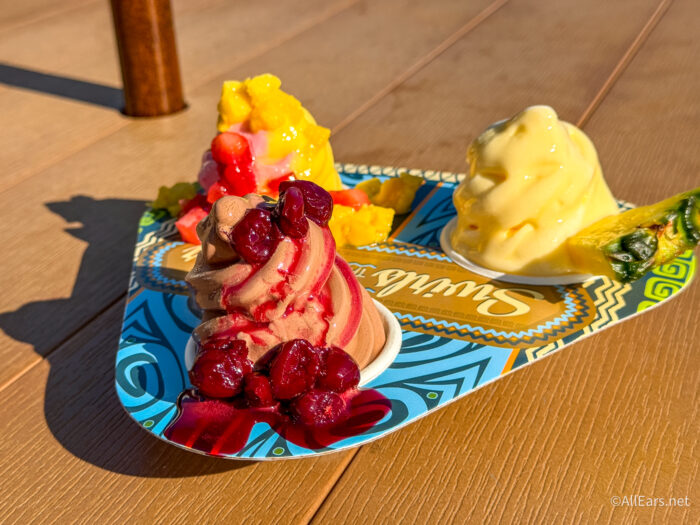 Swirls on the Water is home to some of the most beloved ice cream and Dole Whip treats in the park, so when we heard there was not one, not two, but THREE new offerings, we headed over ASAP to give them a try. Now, we’ll be honest, they’re a *little* early, but hey, that’s okay by us!