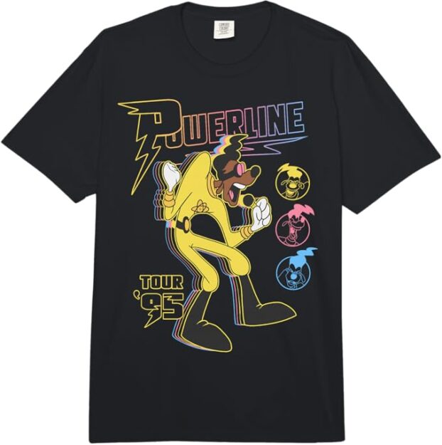 For Disney fans who grew up singing along to A Goofy Movie, this Powerline Tour ’95 shirt is pure nostalgia in wearable form, with bold neon colors and an electric concert-poster vibe. It’s the perfect throwback piece for park days, movie nights, or anywhere you want fellow fans to instantly know you’ve got “eye to eye” taste.