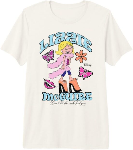 Disney fans who grew up with Lizzie McGuire will appreciate this retro shirt as an instant throwback, capturing Lizzie’s iconic style and playful confidence in a fun, Y2K-inspired design. It’s the perfect nostalgic piece for anyone who still lives by the mantra “Don’t let the smile fool you” and loves wearing their Disney Channel era loud and proud.