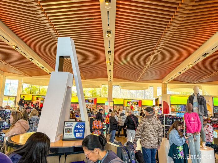 We headed to the Creations Shop (aka the big EPCOT store) in World Celebration to find the whole collection, but there are also smaller stands or booths with some of the souvenirs. Creations is a great way to find everything, so we started there, where there were tons of people waiting to buy their own souvenirs.