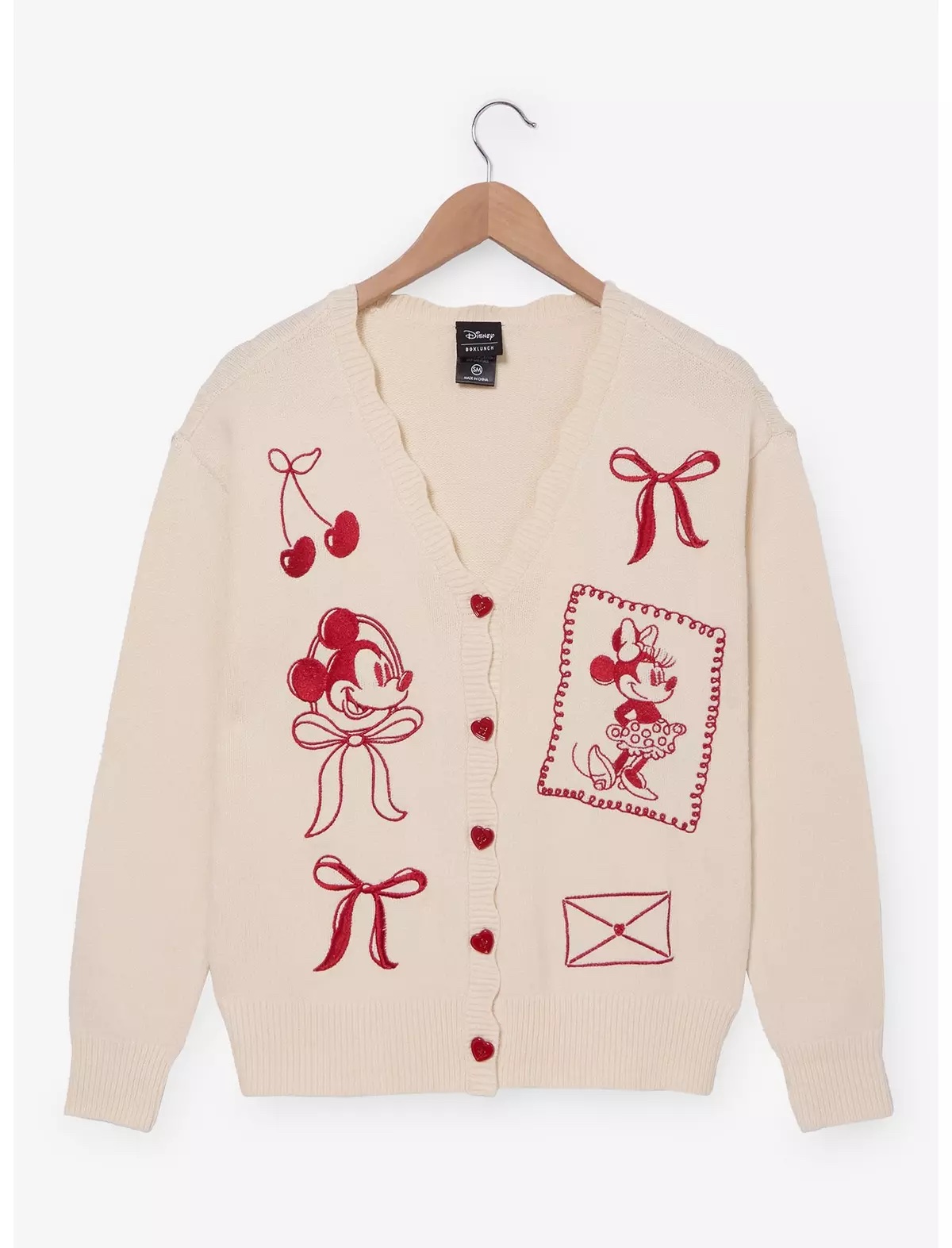 First, let’s take a look at this Mickey & Minnie Valentine’s Day Women’s Cardigan! The cardigan stars the beloved Disney mouse couple, and features embroidered details and heart buttons.