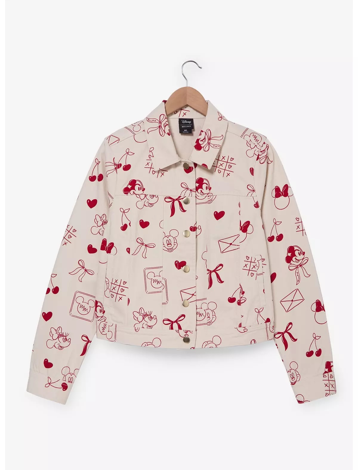 There’s also this Mickey & Minnie Valentine’s Day Icons Women’s Jacket! This BoxLunch exclusive jacket is decorated with Mickey and Minnie among Valentine’s Day designs.