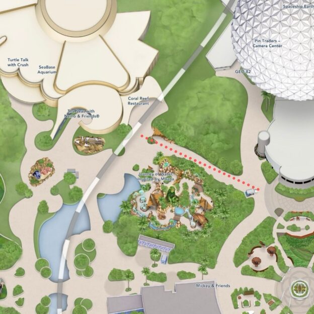 Finally, we’ve got to mention the World Nature pathway that people seem to forget exists! The entrance is a little tucked away on the Spaceship Earth side, but it pops out by the Moana meet-and-greet and Journey of Water — Inspired by Moana. This is also the fastest way to get to The Seas or Coral Reef Restaurant.