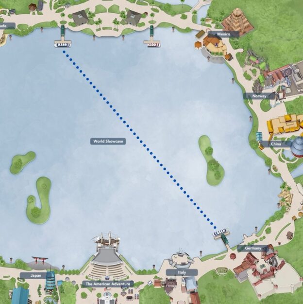 One addition to this list isn’t a pathway to take, but a transportation route that’s often forgotten! Friendship Boats run across World Showcase Lagoon starting at 11AM and running until evening, usually stopping 1-2 hours before the time for the fireworks. You can board these boats near Canada or in Germany.