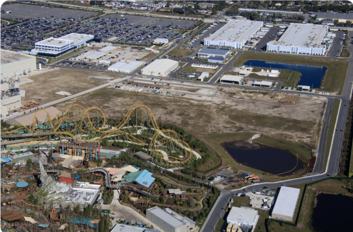 Recent images shared of various stages of construction around Epic Universe show land clearing and preparation in multiple areas around the park, which are drawing attention to potential areas long rumored to be reserved for future expansion. Although details have not been revealed, Universal has confirmed the park WILL expand — and these new photos have a lot to say!