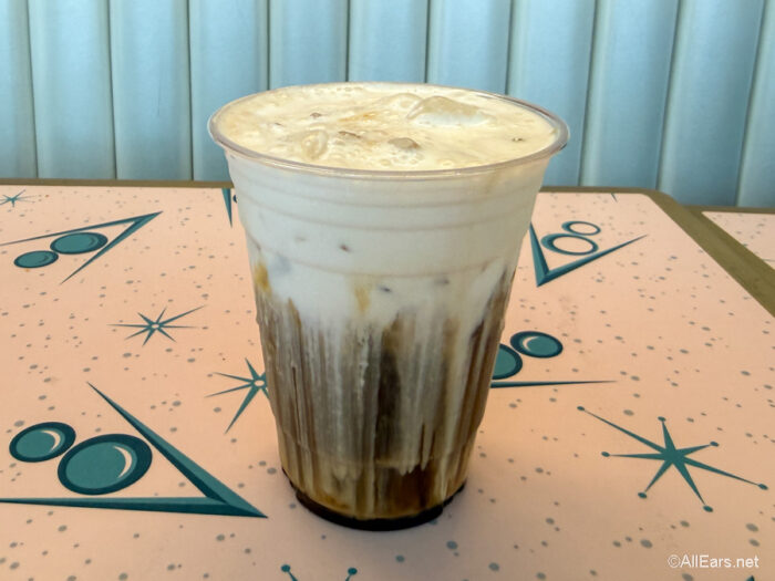 Let’s start with drinks. We picked up the new Start Your Engine Cold Brew for $7.29, made with Joffrey’s Shakin’ Jamaican Cold Brew with caramel premium syrup, and a swirl of caramel topped with housemade caramel-flavored cream and a caramel sauce drizzle. We love the Cold Brew Black Caf in Star Wars: Galaxy’s Edge in Disneyland, but this new drink is a big contender. It’s full of caramel flavor, but we will warn you that it’s creamy and sweet. It’s sort of like a Starbucks Caramel Frappuccino if it were melted, and we mean that in the best way possible.