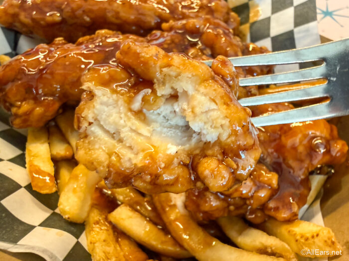 The teriyaki sauce added a nice flavor to the standard Disney chicken tenders. Our fries, though, were a little soggy.